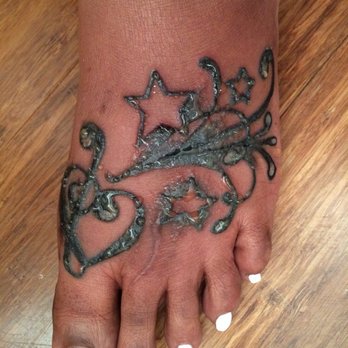 En esta primera cura notará, cuando quite el plástico, que el tatuaje ha supurado una sustancia mucosa con tinta. No se asuste, esto es completamente normal, puesto que al taparlo con el film no traspira.